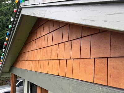 Edmonds remodel with 8 inch clear cedar bevel siding.